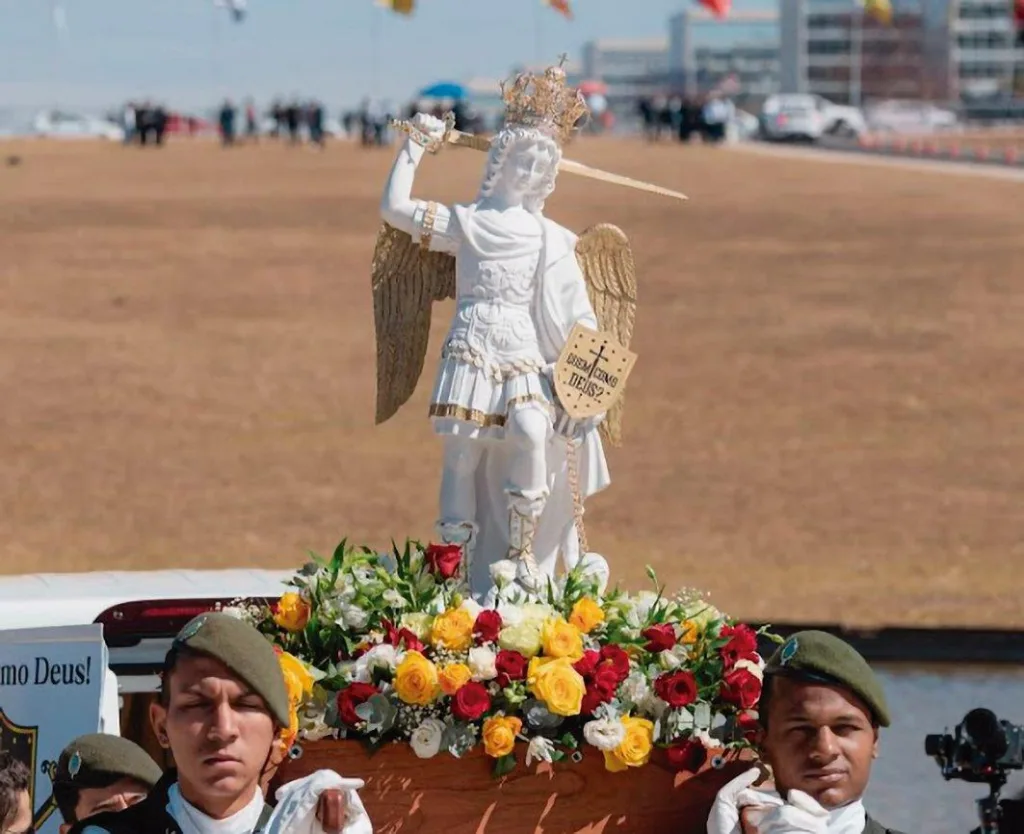 A deputada Simone Marquetto (MDB-SP), promotora da cerimônia, recordou que o País teve como início a celebração de uma Missa e que precisamos de uma restauração da fé católica nos espaços públicos. Ela ofereceu uma espada à imagem de São Miguel, como símbolo de sua defesa aos brasileiros, afirmando: “Com essa espada, símbolo da autoridade e da justiça, confiamos a vós a guarda do Brasil, para que se erga contra as forças do mal e seja luz entre as nações.”