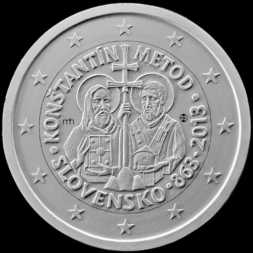OBS: As moedas são de 2 euros e serão produzidos 1 milhão de unidades em comemoração da chegada dos santos evangelizadores à Grande Moravia.