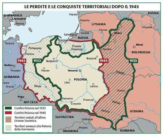 "O primeiro caso estudado foi o da Polônia. Churchill acabara por aceitar a sugestão de Roosevelt de que as fronteiras orientais desse país fossem fixadas pela linha Curzon —o que representava a anexação à Rússia Soviética de toda a Polônia Oriental [mapa ao lado] — ficando por regular possíveis retificações parciais. Mas quando Stalin pediu o avanço da Polônia para o Oeste, até o Oder e o Neisse, Churchill levantou o seu protesto, dizendo que seria loucura «fartar o novo Estado com tanta comida alemã: ele estouraria de indigestão!» (https://www.pliniocorreadeoliveira.info/erros-de-roosevelt-na-segunda-guerra-mundial)