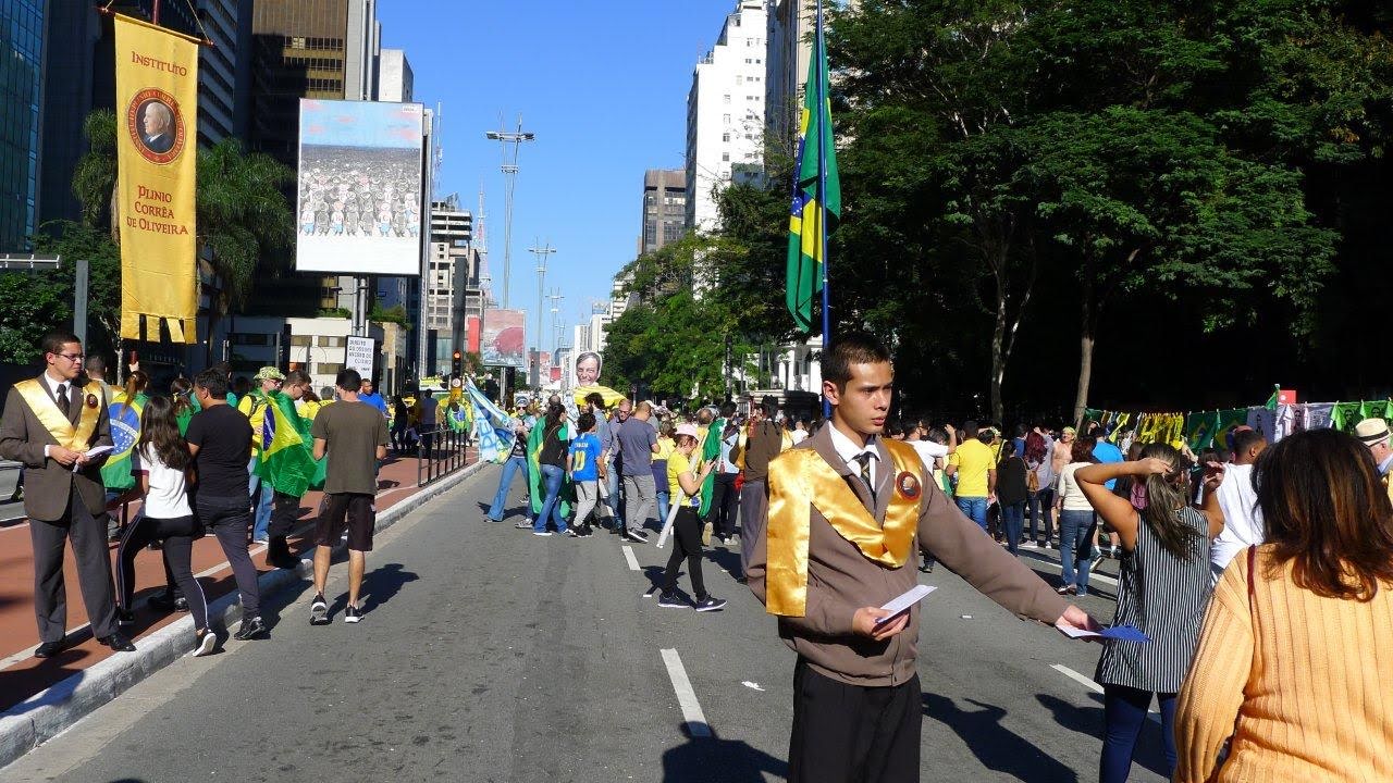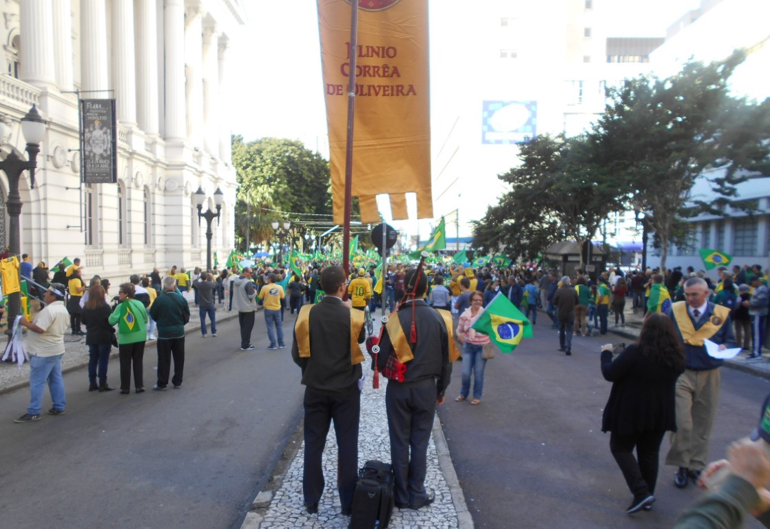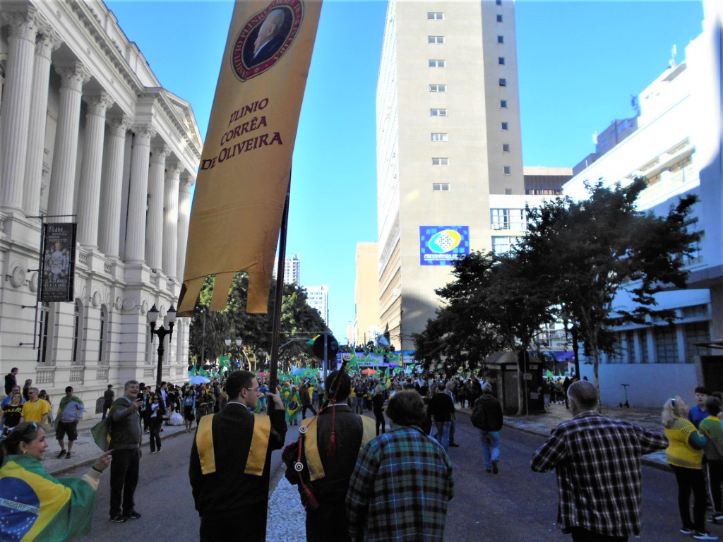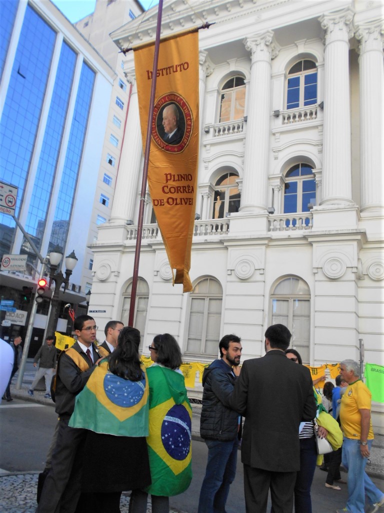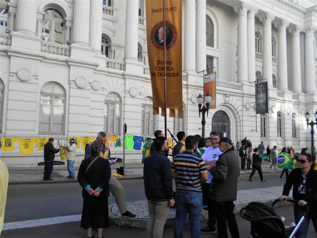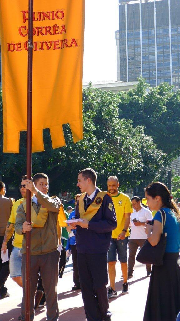 – Trecho do Manifesto: “Está em jogo o Brasil autêntico, cristão e forte“ distribuído pelo IPCO na ultima manifestação do dia 26 de maio