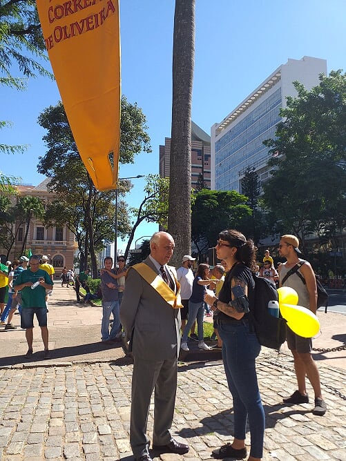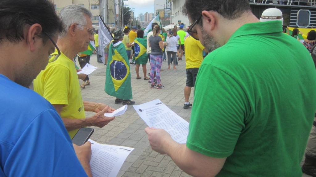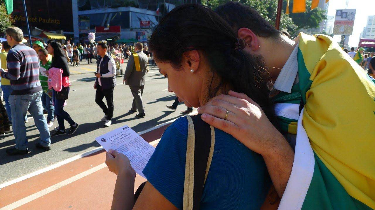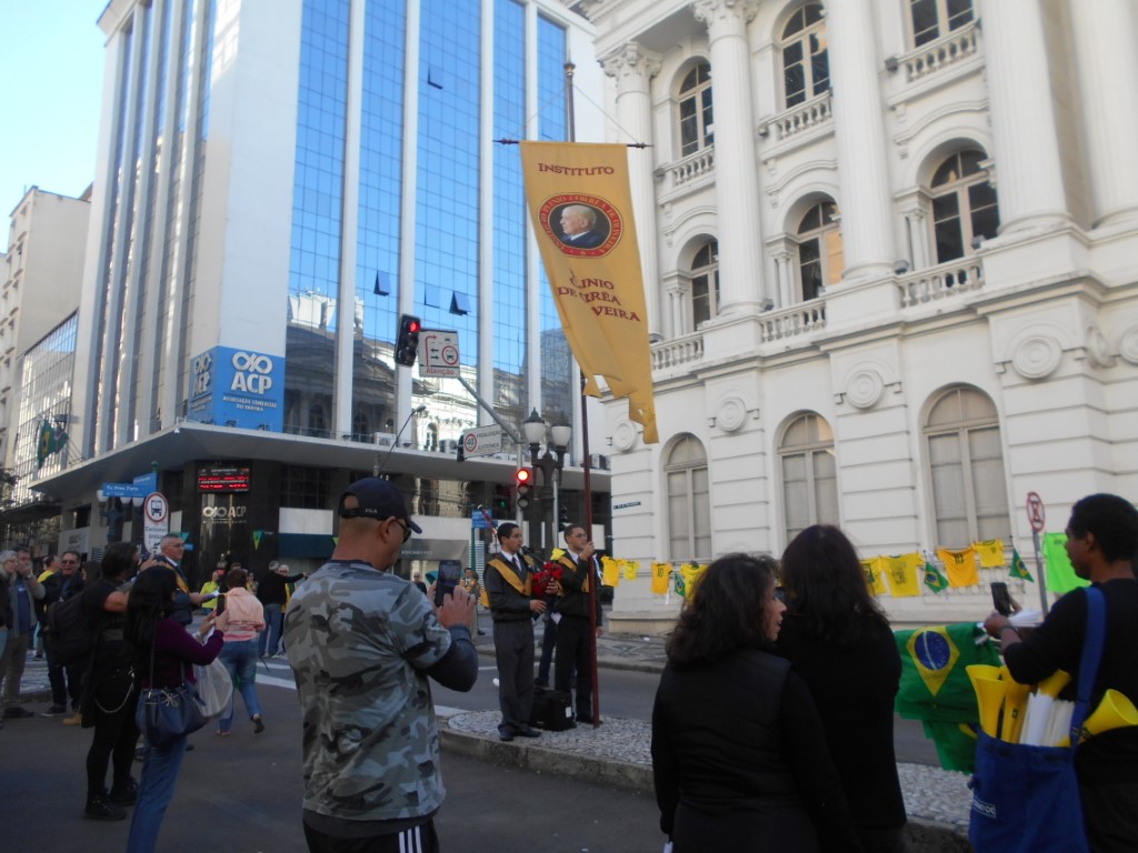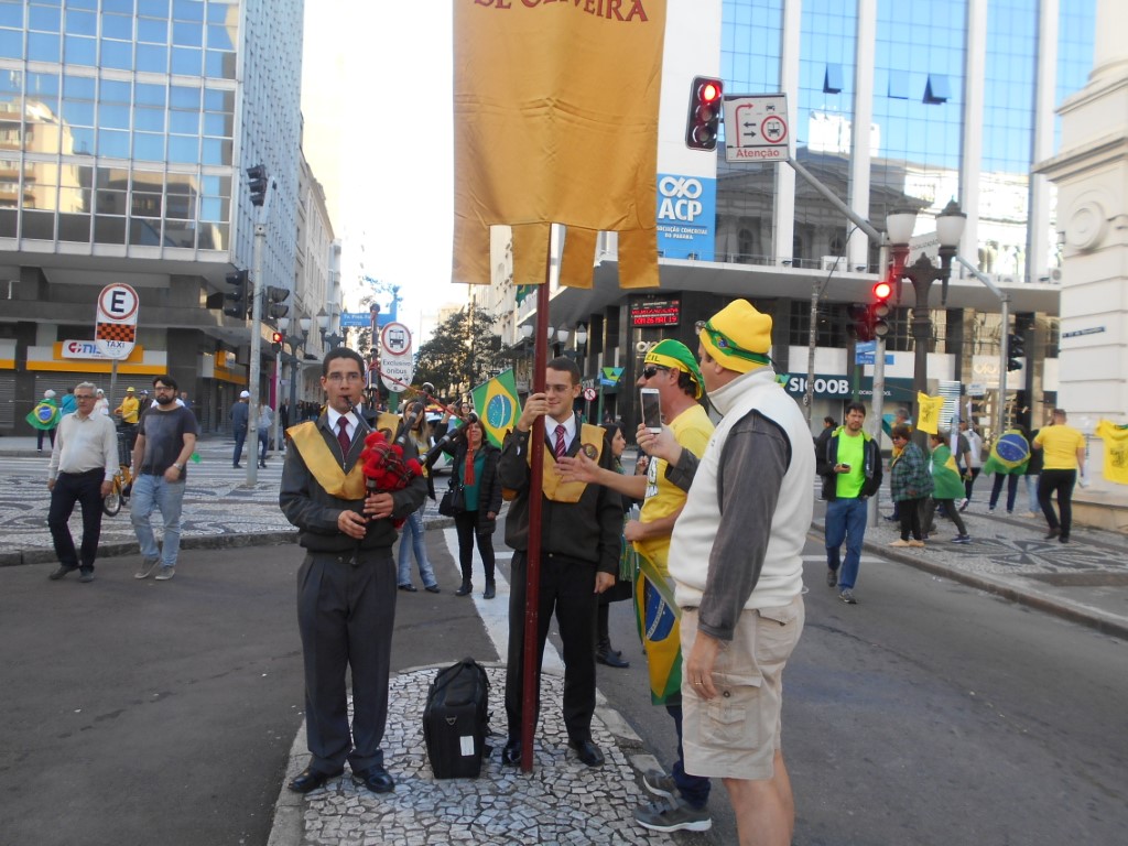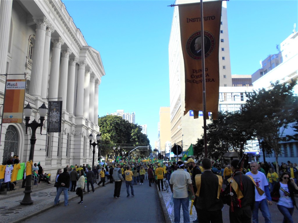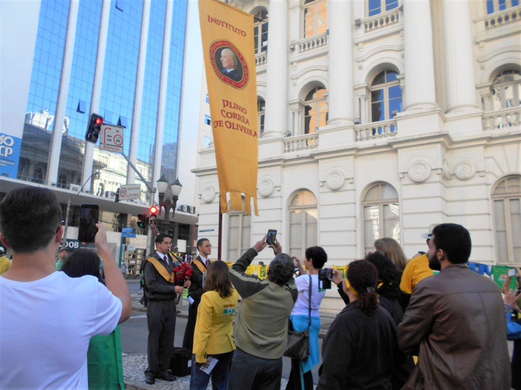 – Trecho do Manifesto: “Está em jogo o Brasil autêntico, cristão e forte“ distribuído pelo IPCO na ultima manifestação do dia 26 de maio