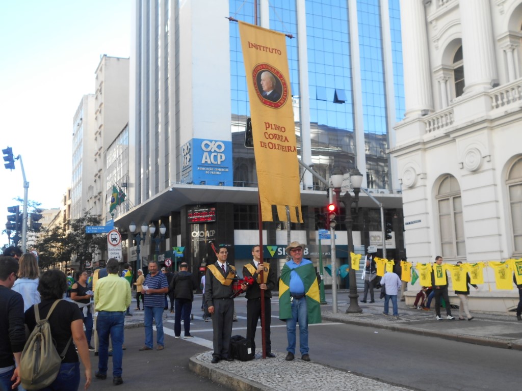 – Trecho do Manifesto: Está em jogo o Brasil autêntico, cristão e forte distribuído pelo IPCO na ultima manifestação do dia 26 de maio