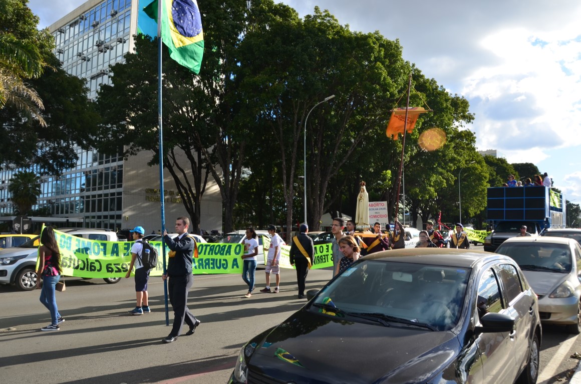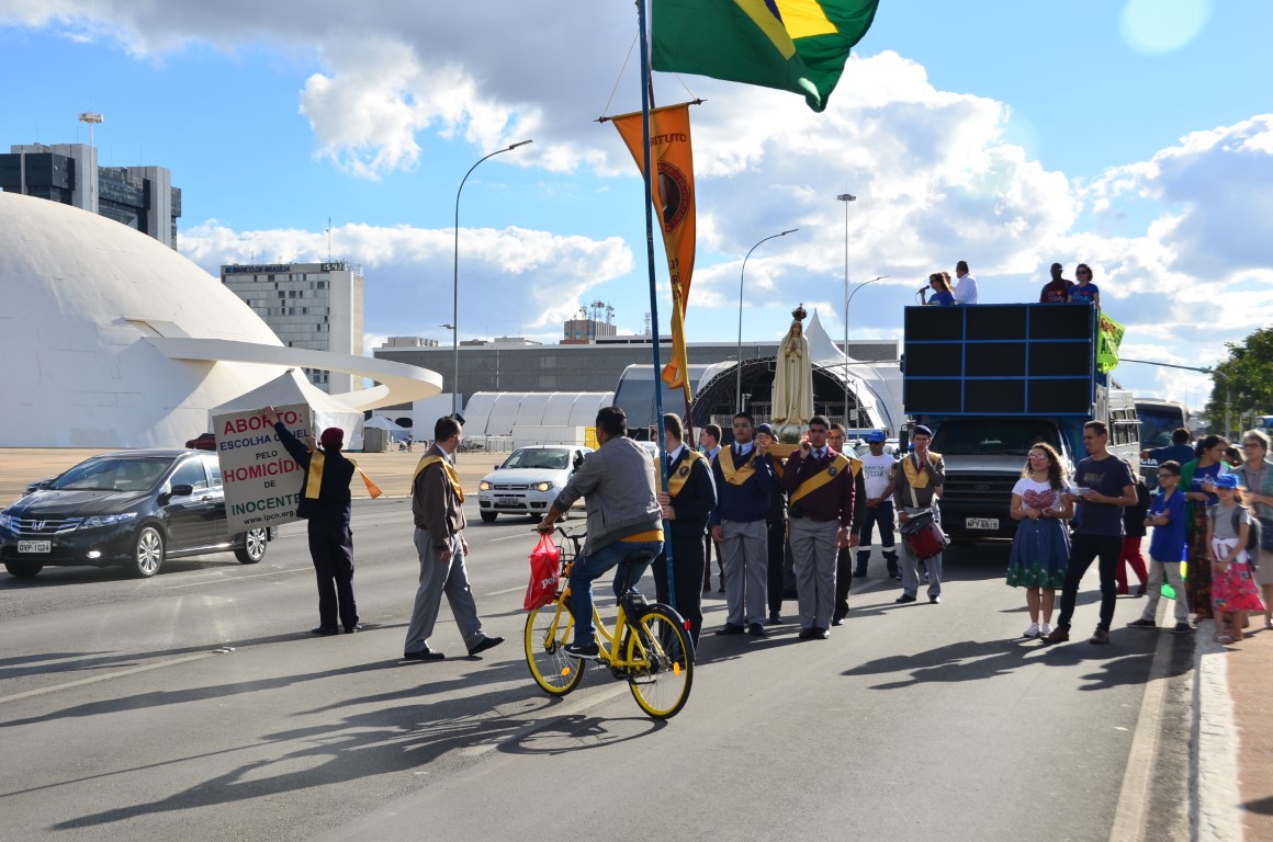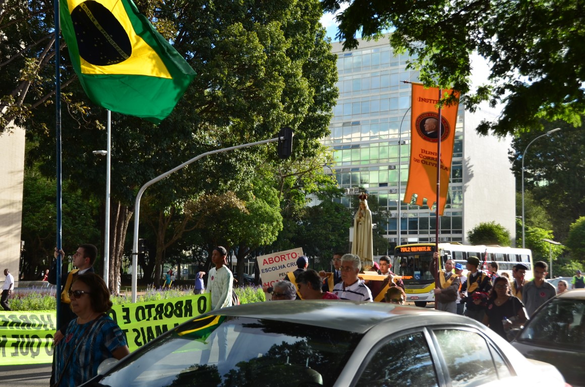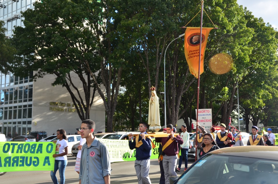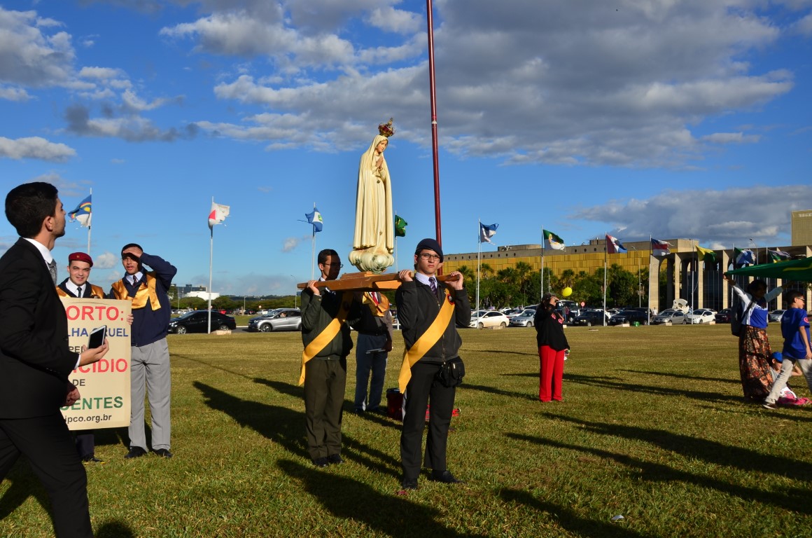 Voluntários da Ação Jovem levaram uma imagem de Nossa Senhora de Fátima e portavam cartazes pedindo para os motoristas buzinarem contra o aborto. Diversos manifestantes agradeciam a presença do IPCO, muitos paravam para rezar e tirar fotos em frente à imagem de Nossa Senhora. A marcha contou com a presença de numerosas crianças.