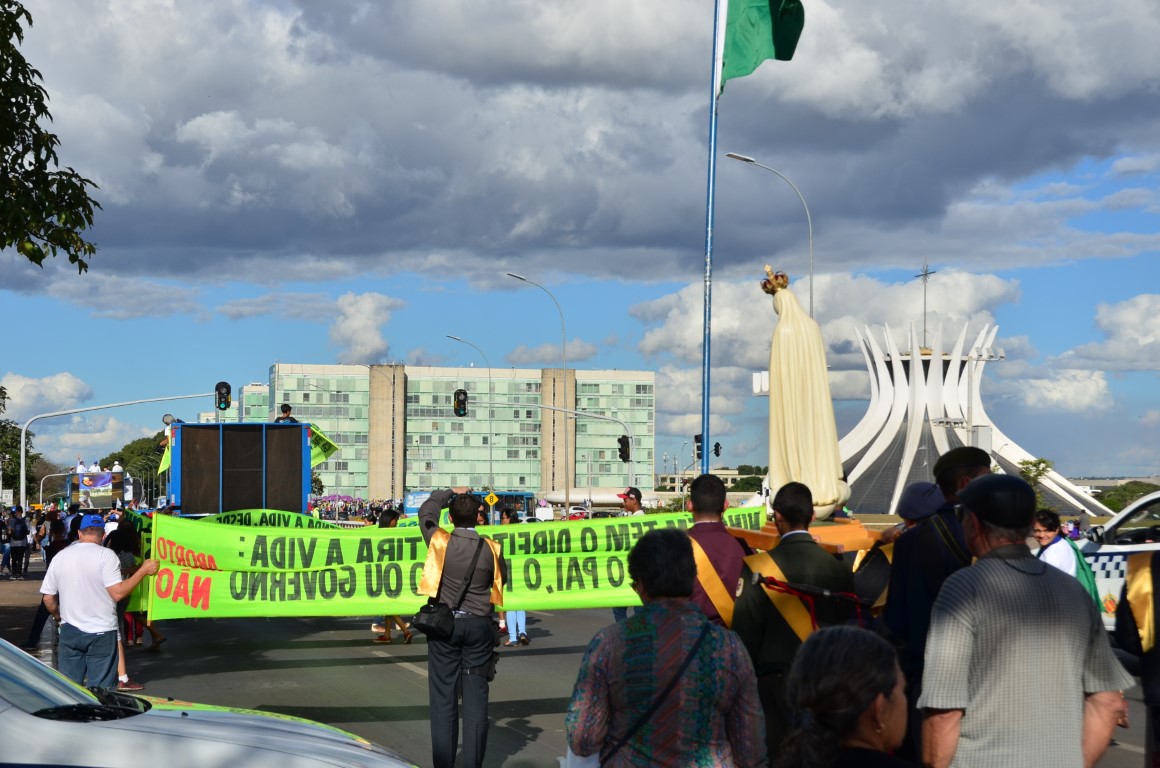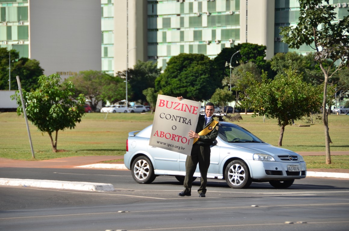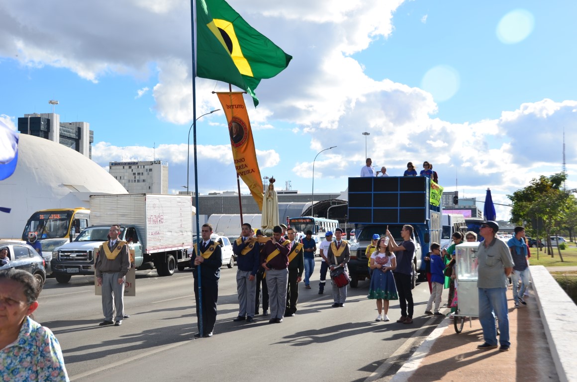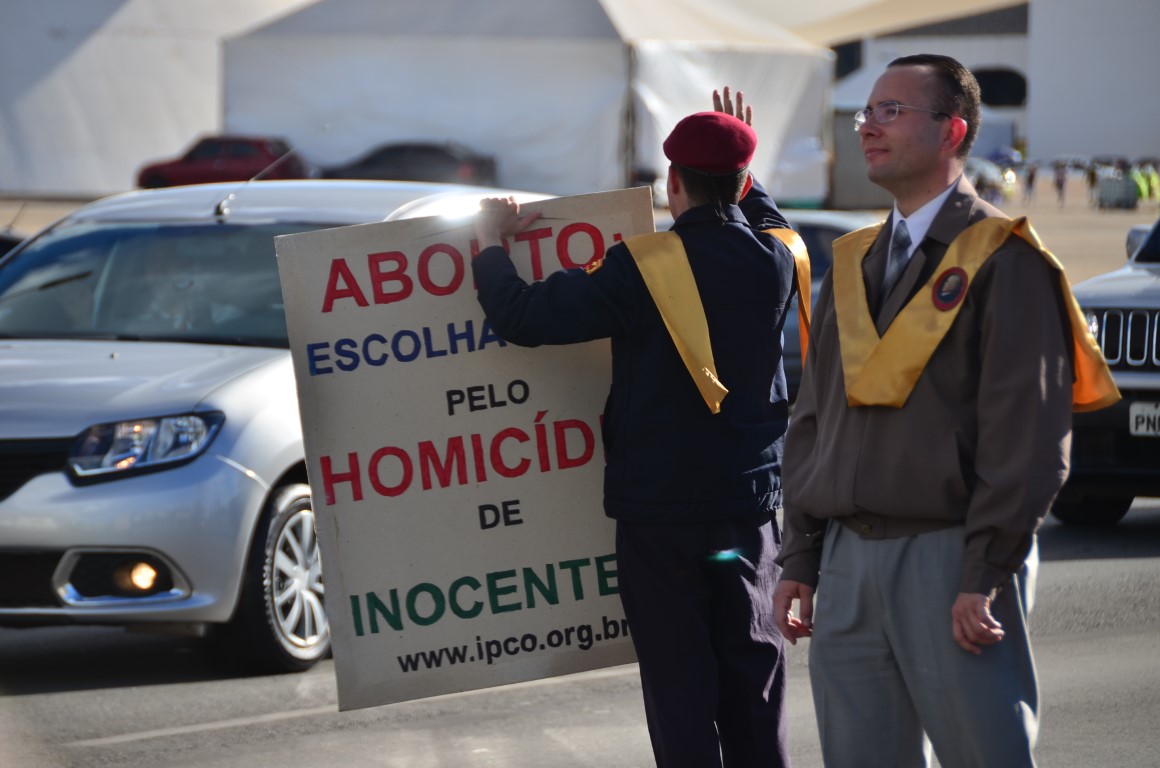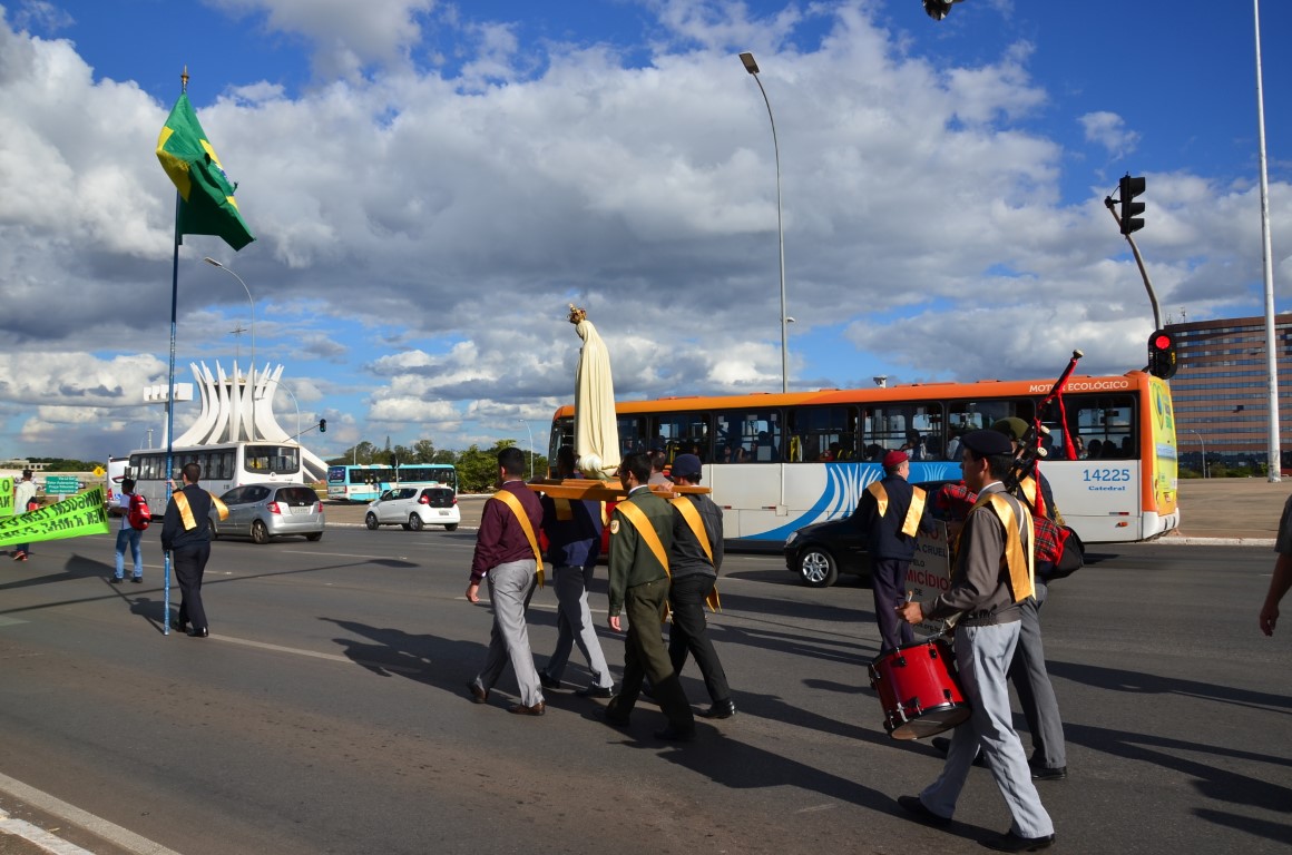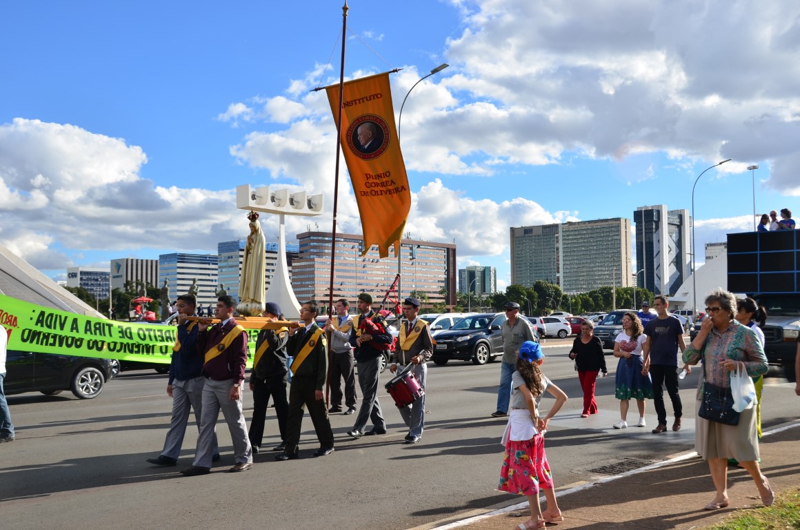 Voluntários da Ação Jovem levaram uma imagem de Nossa Senhora de Fátima e portavam cartazes pedindo para os motoristas buzinarem contra o aborto. Diversos manifestantes agradeciam a presença do IPCO, muitos paravam para rezar e tirar fotos em frente à imagem de Nossa Senhora. A marcha contou com a presença de numerosas crianças.