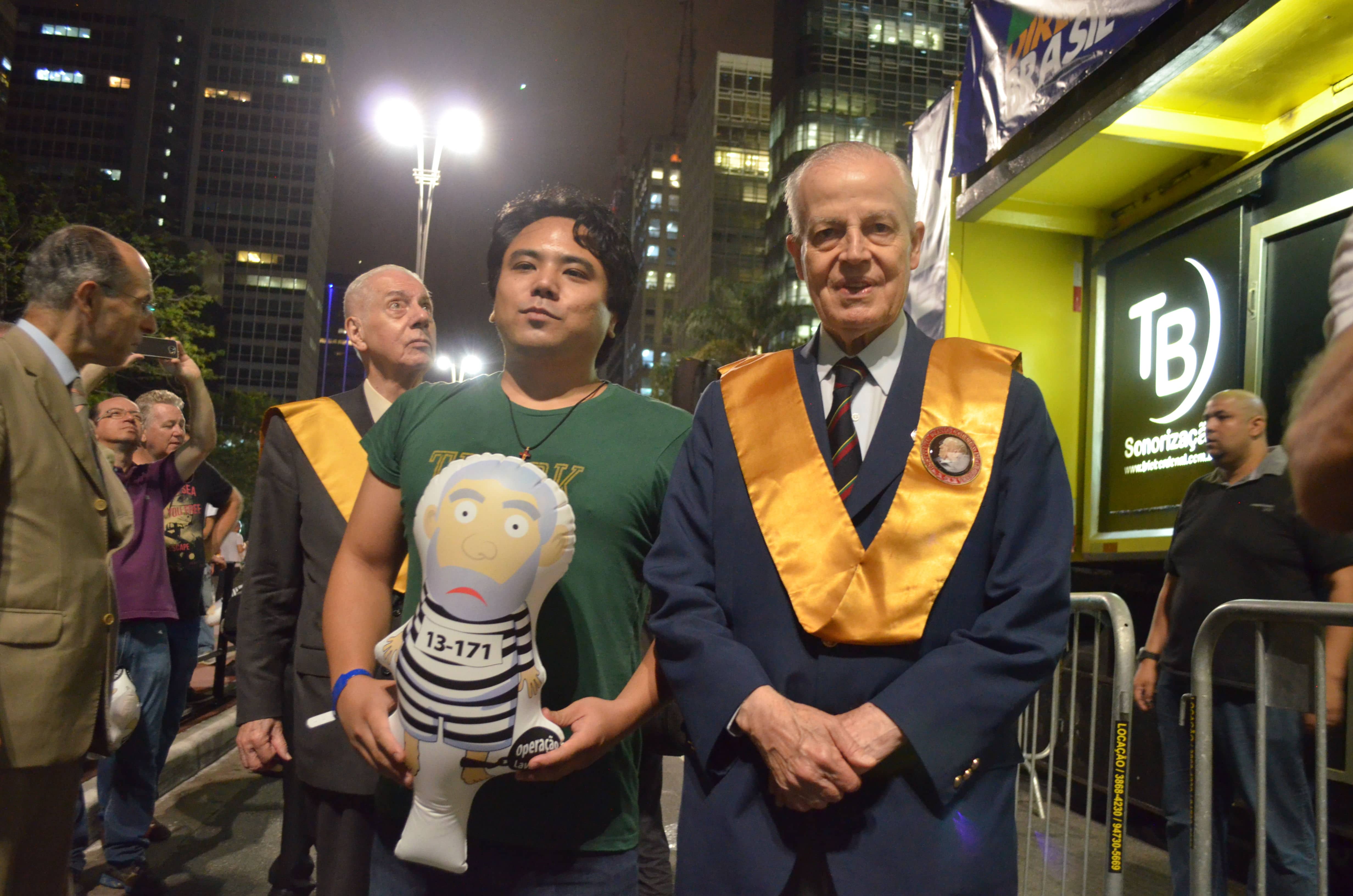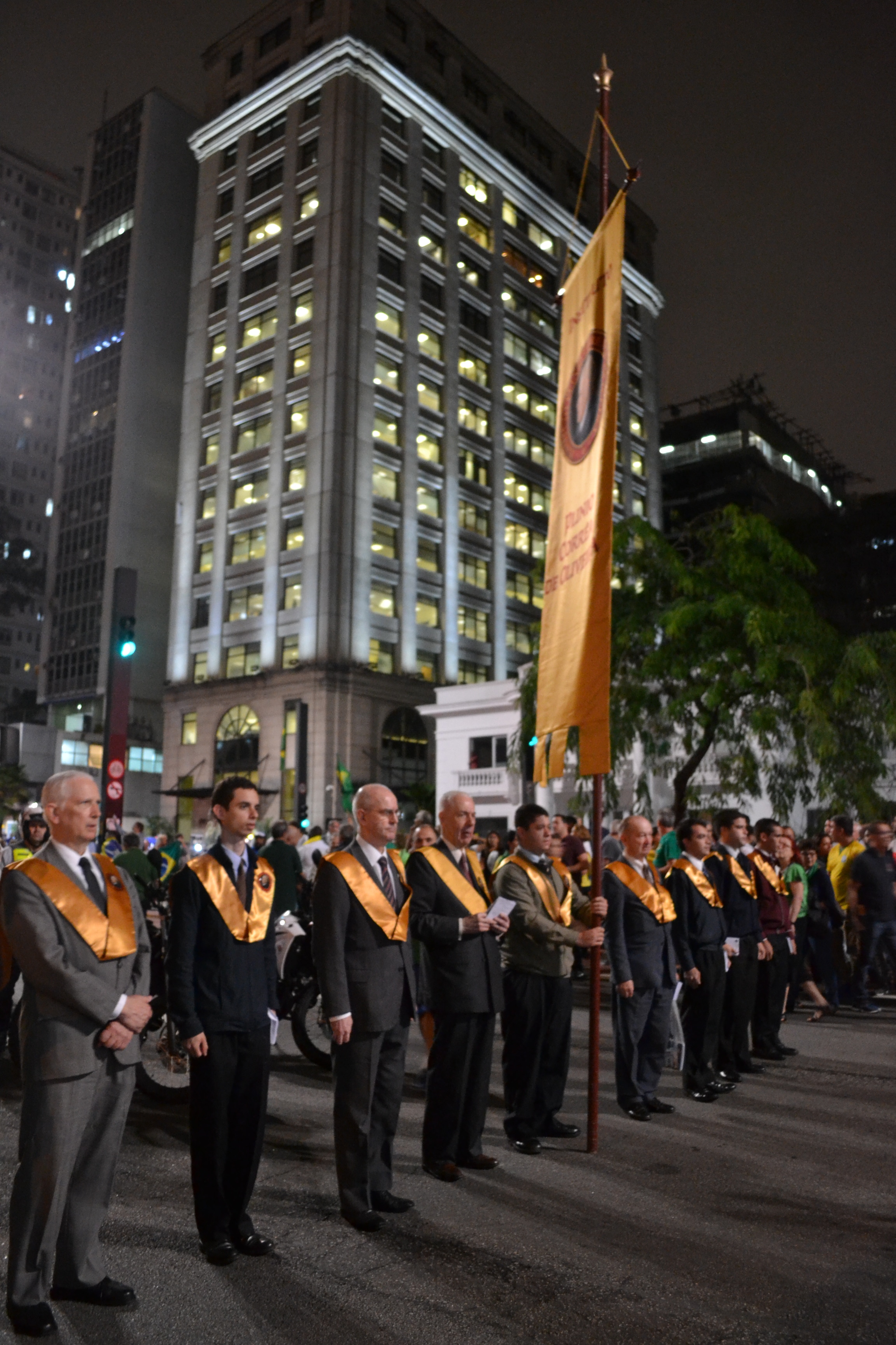 Voluntários do Instituto Plinio Corrêa de Oliveira participaram ontem, 03/04, da manifestação contra a concessão do habeas corpus ao ex-presidente Luis Inácio Lula da Silva na Av. Paulista.