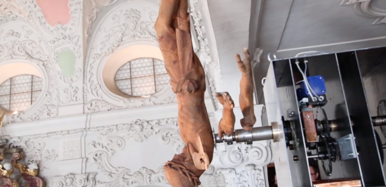“À medida que o tempo passa, os braços formam os diferentes ângulos e o corpo estático do Cristo morto de repente toma vida, o que representa um momento de libertação da cruz e uma superação da morte”. Afirma o bispo ao se referir à obra.