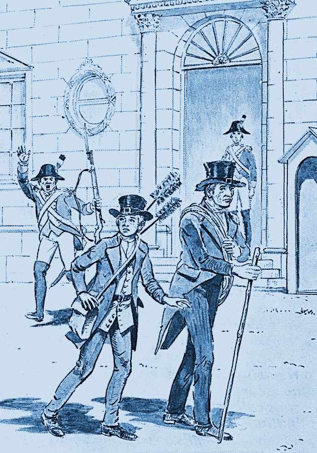 O carcereiro abriu os olhos, dirigiu a luz da lanterna para o local de onde vinha a voz, viu apenas a criança carregada de cordas, de ganchos, de vasculhos — tudo instrumentos do seu ofício — e, tranqüilizado, puxou o cordão da porta.