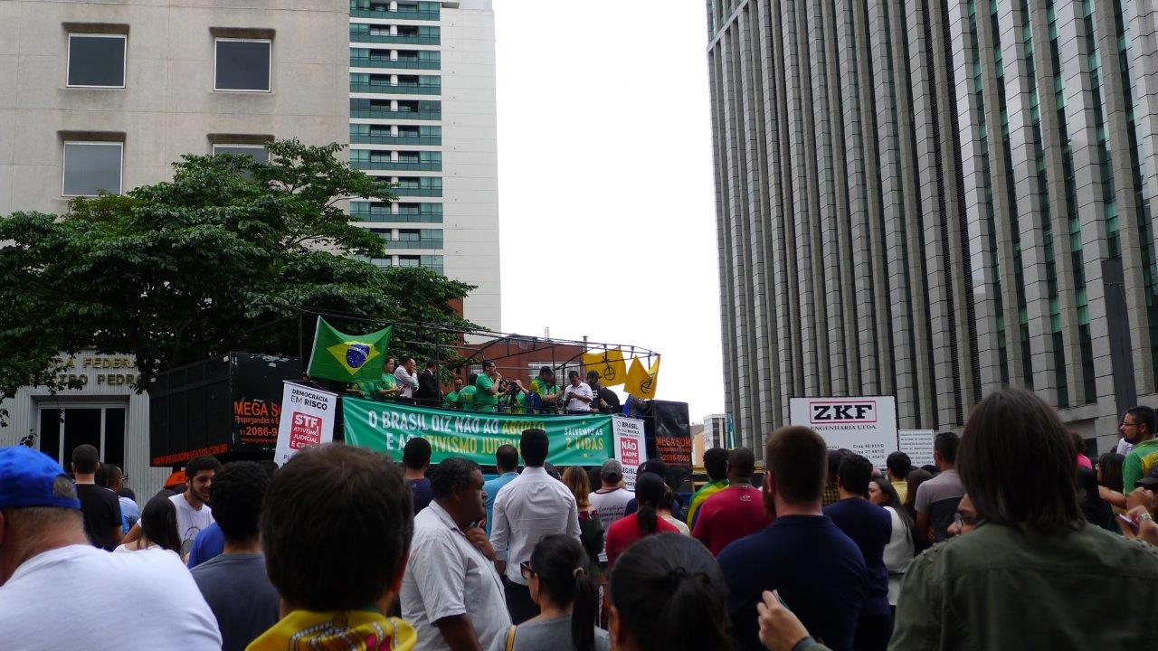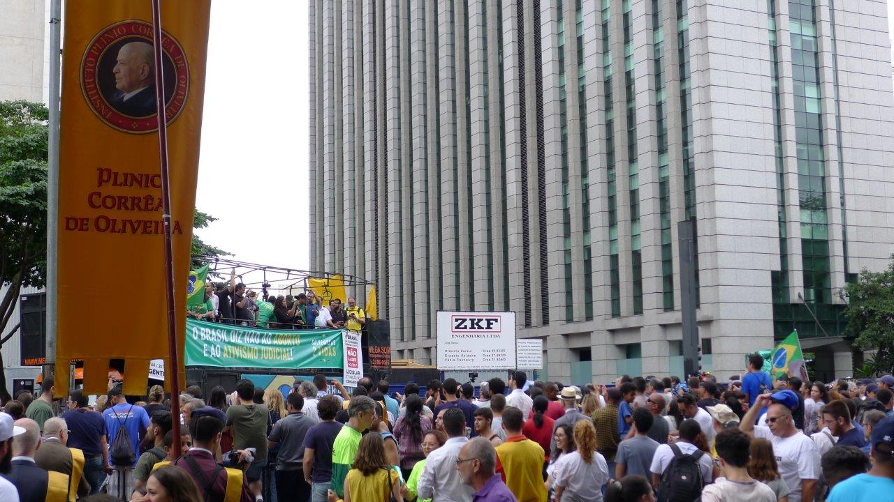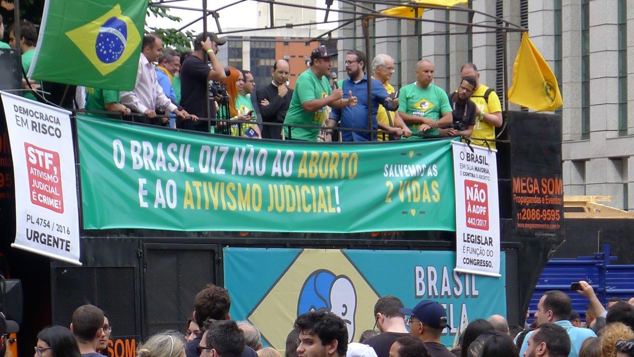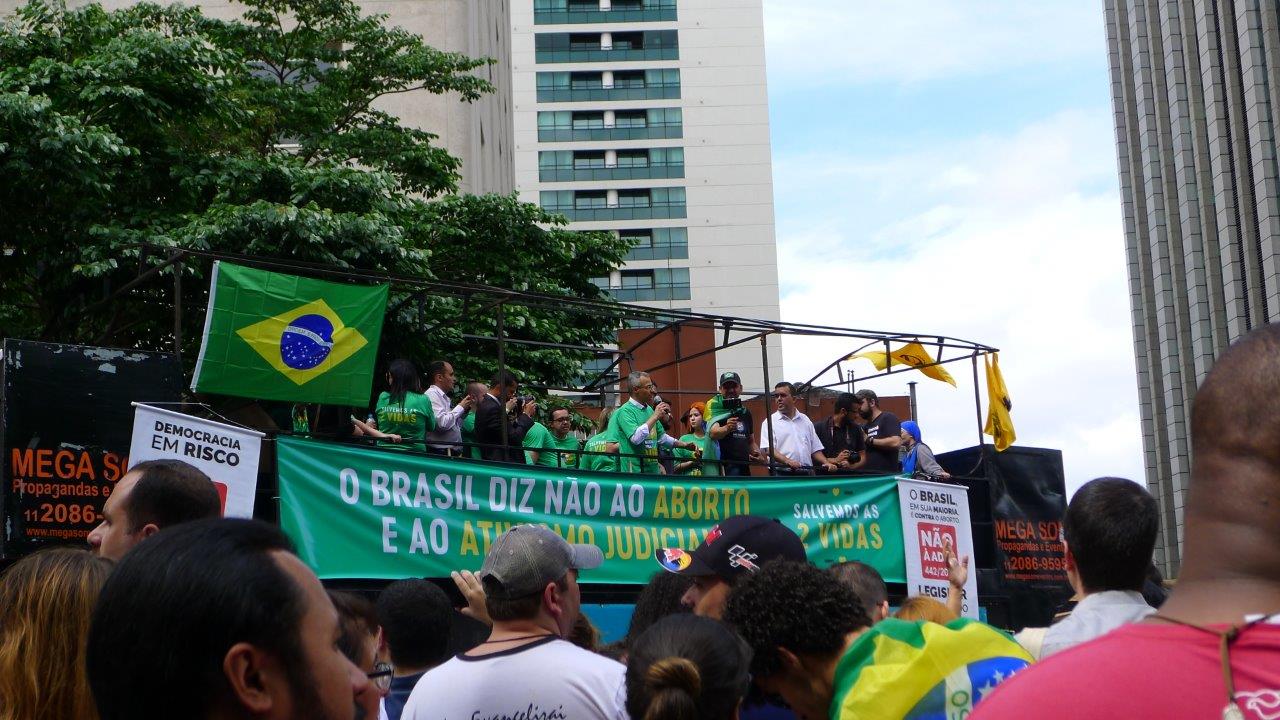 Durante a manifestação do último domingo, do alto de um carro de som, ilustres oradores dirigiram-se aos presentes encorajando-os ao bom combate em defesa da vida inocente, desde a concepção até a morte natural.