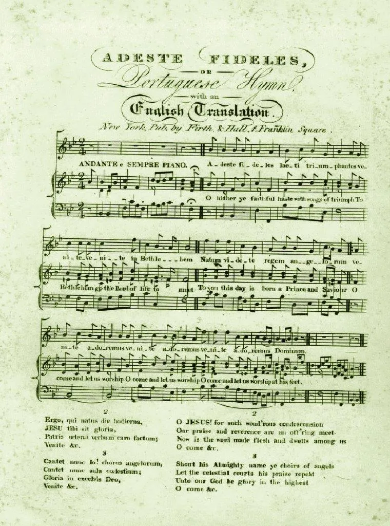 Durante as noites frias do Natal londrino no início do século XIX as pessoas que passavam em frente à Capela da Embaixada de Portugal costumavam ouvir os melodiosos acordes de uma encantadora canção. Por que apenas ali naquele edifício ela era ouvida? Uma simples pesquisa sobre uma das mais famosas músicas natalinas — que tanto agradava os ingleses — nos leva a narrações lendárias, conjecturas históricas e até profecias. Os moradores de Londres a chamavam de The Portuguese Hymn (o Hino Português). Nós a conhecemos melhor como Adeste Fidelis.