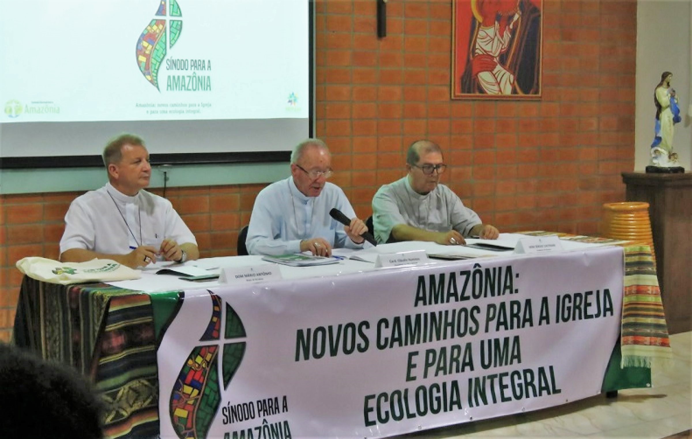 No centro, o cardeal Cláudio Hummes, presidente da Rede Eclesial Pan-Amazônica, que tem alardeado o “Sínodo para a Amazônia”.