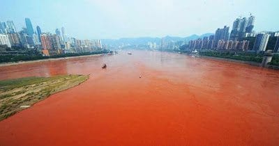 O imenso, histórico e poético rio Yangtzé, outrora conhecido como “a correnteza de ouro”, ou “Rio Azul”, adquiriu uma estanha cor vermelha, assustando os ribeirinhos e a imprensa internacional, informou a ABCNews.