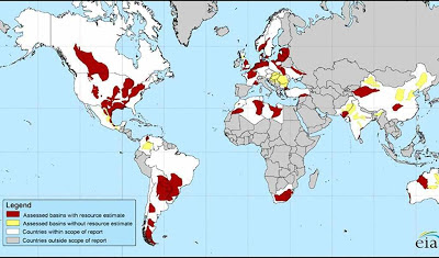 | Jazidas de gás e petróleo de xisto no mundo. Fonte EIA |