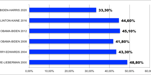 Apesar do total de Eleitores só ter aumentado 0.14% desde 2016, Biden -- que não é um candidato carismático próprio a atrair votos -- recebeu 21,94% votos a mais do que Hillary Clinton. Mais um "milagre" que chama a atenção…