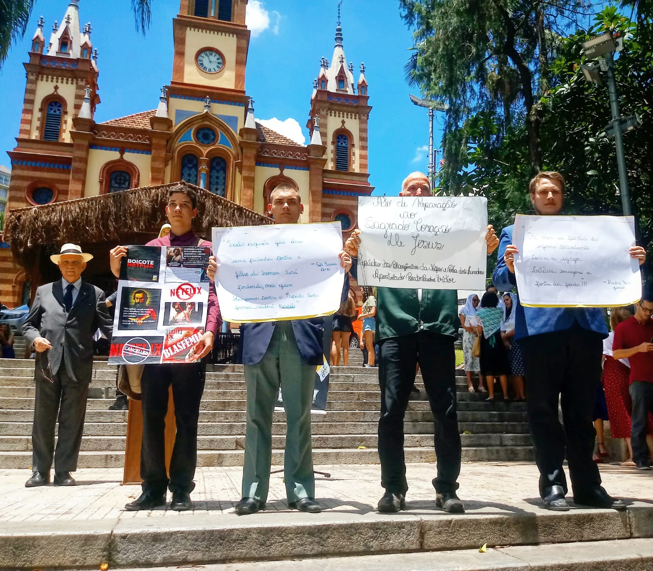 Nas cidades Belo Horizonte (MG) e São Paulo (SP), católicos se reuniram para rezar e demonstrar sua repulsa ao filme da Porta dos Fundos e Netflix, que retrata Nosso Senhor como um homossexual que não quer Redimir o Gênero Humano.